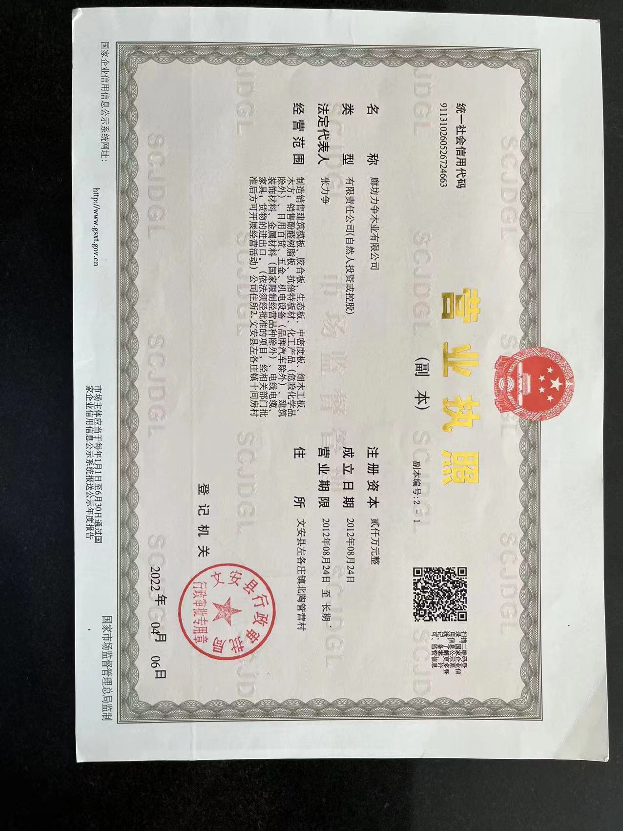 廊坊力爭木業有限公司創建于1995年,至今已有兩個生產基地。公司占地200畝,建筑面積6萬平方米。是華北地區生產各種規格清水模板的企業。坐落于河北集科研、生產、銷售于一體的膠合板市場左各莊鎮。公司不斷發展,逐漸擴大。于2006年公司遷入新址——南外環。地處京、津、保三角經濟圈中心地帶,地理位置便捷。